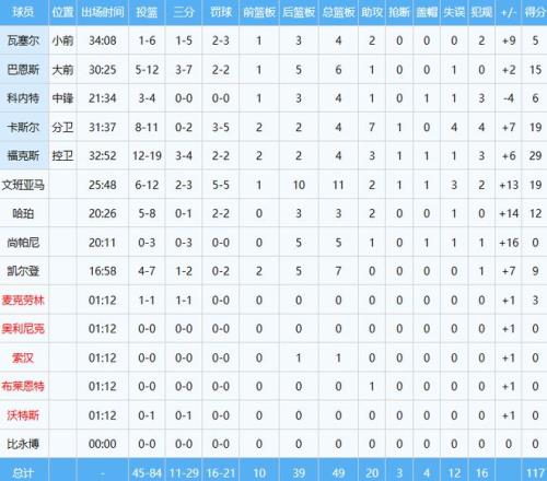 马刺数据如下: