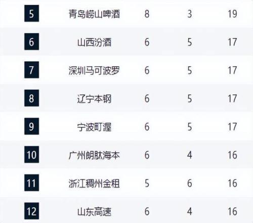 黑马青岛队本轮主场输球,目前以8胜3负暂居第五,但末节崩盘的老毛病仍未根治。深圳队凭借沈梓捷的制空权逆转青岛,与山西、辽宁、宁波、广州组成6胜集团的"甜蜜区"。山西队精准的三分雨浇灭北控,辽宁队王岚钦的穿针引线激活全队,两支传统强队终于止住颓势。宁波队虽惜败北京,但该队战术体系已初见成效,成为本赛季最大黑马。广州队少赛一场却豪取三连胜,该队对年轻球员的调教令人眼前一亮。
